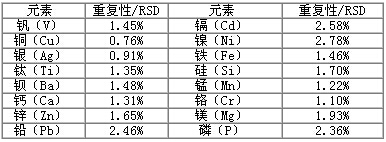 连续测试6份平行样品,盘算6次测试数据的相对标准偏差,即为重复性数据,结果见下表