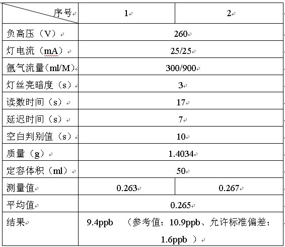 ǰ´¦Àí£º´ÓÑùÆ·ÖгÆÁ¿1.4034gÓÚ²£Á§ÉÕ±ÖУ¬¼ÓÈë8ml HNO3ºÍ2mlHClO4¼ÓÈÈÈܽ⣨Ïû½âζÈ350¡æ×óÓÒ£©¡£ÀäÈ´ºó¶¨ÈÝÓÚ50mlÈÝÁ¿Æ¿ÖУ¬¼ÓÈë1ml HNO3£¬5%µÄÖØ¸õËá¼Ø1ml¡££¨Í¬Ê±×öÑùÆ·¿Õ°×£©£¨»¹Ô¼Á¼Ó0.5%ÌúÇ軯¼Ø£©