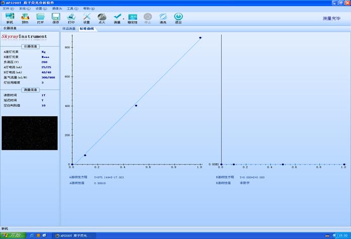 £¨AµÀÏßÐÔ·½³Ì£ºY=875.144*X-17.003£©£»£¨AµÀÏßÐÔÖµ£º0.99916£©¼ûͼ1