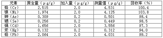 ׼ȷ³ÆÈ¡6·ÝÑ̲ÝÑùÆ·£¬Ô¼0.2g/·Ý£¬»®·Ö²â¶¨ÆäÖеÄAs ¡¢Cr ¡¢Ni¡¢Se ¡¢Cd ¡¢Hg ºÍPb£¬²¢Æ¾¾Ý²â¶¨½á¹ûÅÌËãÆäÏà¶Ô±ê׼ƫ²î(RSD)¡£½á¹ûÏÔʾ,Cr ¡¢Ni ¡¢As ¡¢Se ¡¢Cd ¡¢HgºÍPbµÄRSD»®·ÖΪ2.77 %¡¢3.91 %¡¢5.52 %¡¢3.31%¡¢1.51 %¡¢9.66 %ºÍ1.89 %¡£Êý¾Ý¼û±í3¡£