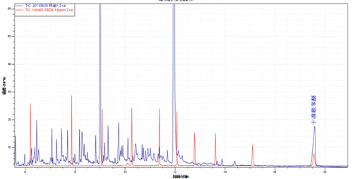 ÑùÆ·TICͼ£¨À¶É«£©Óë¶àäåÁª±½ÃÑ»ì±êTICͼ£¨ºìÉ«£©