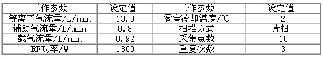 ÒÔ10.0ng/mL Li ¡¢Co ¡¢In ¡¢Ce ¡¢U ºÍBi»ìÏýµ÷гҺÓÅ»¯ÒÇÆ÷ÊÂÇé²ÎÊý£¬Ê¹ÒÇÆ÷ÁéÃô¶È×î¼Ñ£¬Í¬Ê±È·±£Ñõ»¯Îï¼°Ë«µçºÉ²úÂʵÍÓÚ3%£¬¾ßÌåÊÂÇé²ÎÊý¼û±í1¡£ÔÚÒÇÆ÷×î¼ÑÊÂÇé²ÎÊýÌõ¼þÏ£¬ÒÔÄڱ귨½øÐвâÊÔ¡£