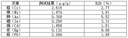 ׼ȷ³ÆÈ¡6·ÝÑ̲ÝÑùÆ·£¬Ô¼0.2g/·Ý£¬»®·Ö²â¶¨ÆäÖеÄAs ¡¢Cr ¡¢Ni¡¢Se ¡¢Cd ¡¢Hg ºÍPb£¬²¢Æ¾¾Ý²â¶¨½á¹ûÅÌËãÆäÏà¶Ô±ê׼ƫ²î(RSD)¡£½á¹ûÏÔʾ,Cr ¡¢Ni ¡¢As ¡¢Se ¡¢Cd ¡¢HgºÍPbµÄRSD»®·ÖΪ2.77 %¡¢3.91 %¡¢5.52 %¡¢3.31%¡¢1.51 %¡¢9.66 %ºÍ1.89 %¡£Êý¾Ý¼û±í3¡£